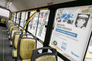 Por otra parte, Adriana Rodríguez, hermana del héroe browniano Mario Gustavo Rodríguez, expresó su alegría, emoción y agradecimiento por esta iniciativa. “Me pasó que varios conocidos cuando se subieron a colectivos vieron los carteles, se sorprendieron y me hicieron llegar fotos. A mí me encantó, se me explota el corazón de alegría. Es una iniciativa muy linda, un reconocimiento por parte del pueblo de Brown”, sostuvo.