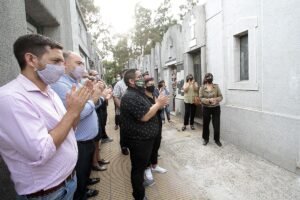El acto se realizó en el Cementerio ubicado en Falucho al 3900, donde se brindó una pequeña biografía de los héroes homenajeados David Rolando Ramos y Adrián Marcelo Peñalba para luego trasladar sus restos a la bóveda inaugurada en 2018 por el intendente Mariano Cascallares en el marco de la política pública de “malvinizar” al distrito.