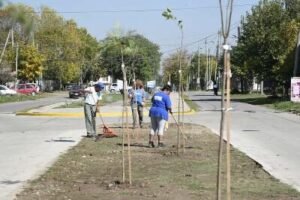 Luego los trabajos se trasladaron al boulevard de la recientemente pavimentada calle Yapeyú de Glew, en una extensión total de 14 cuadras para embellecer por completo la zona y contribuir a la construcción de un distrito más sustentable y amigable con el ambiente. Cabe destacar que previo al nuevo asfalto, en ese lugar se concretó una importante obra hidráulica en beneficio de miles de vecinos y vecinas para evitar anegamientos e inundaciones.
