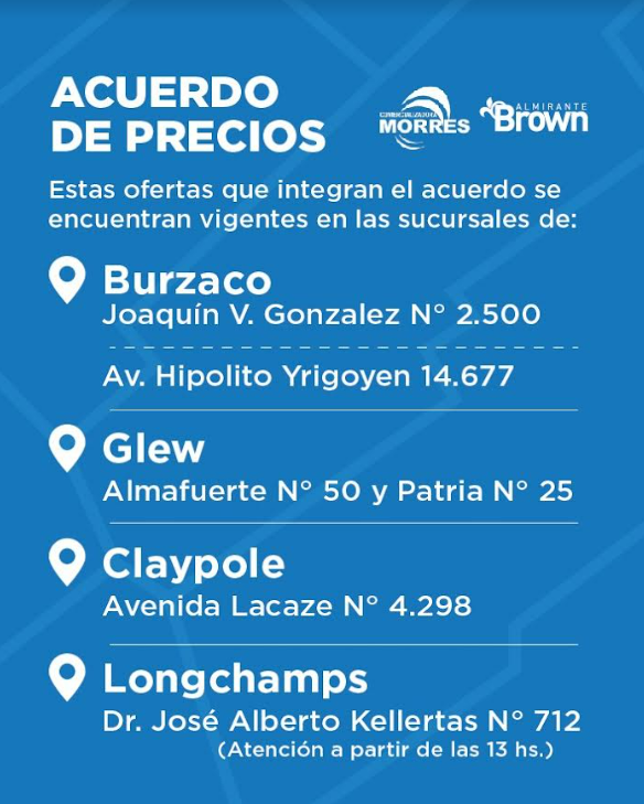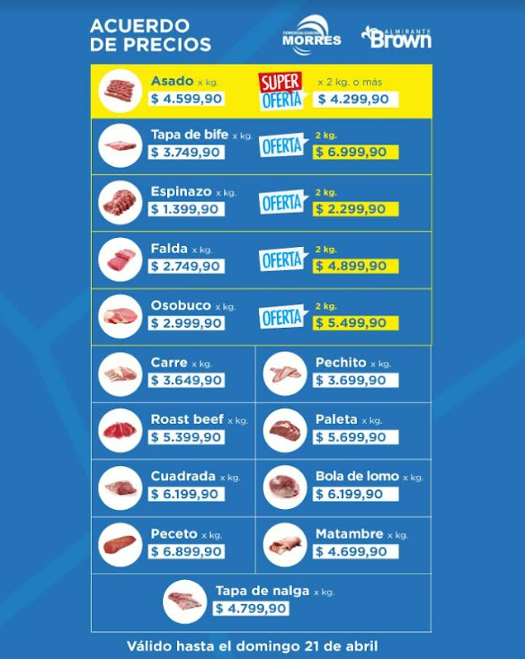 Se trata del acuerdo que rige entre la Comuna browniana y la empresa comercializadora “Morres”, el cual arrancó a fines de diciembre de 2023 y es aplicable en sus sucursales en las localidades de Burzaco, Glew, Claypole y Longchamps para una amplia variedad de cortes.