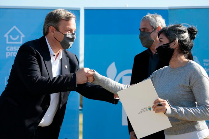 Posteriormente se trasladaron, cumpliendo todas las medidas sanitarias y de distanciamiento social, hasta Barrio Lindo, donde recorrieron el avance de las obras de viviendas, en el marco de un proyecto que prevé la realización de más de 570 inmuebles en la zona. Ahora esas obras se finalizarán en el marco del programa nacional «Reconstruir.