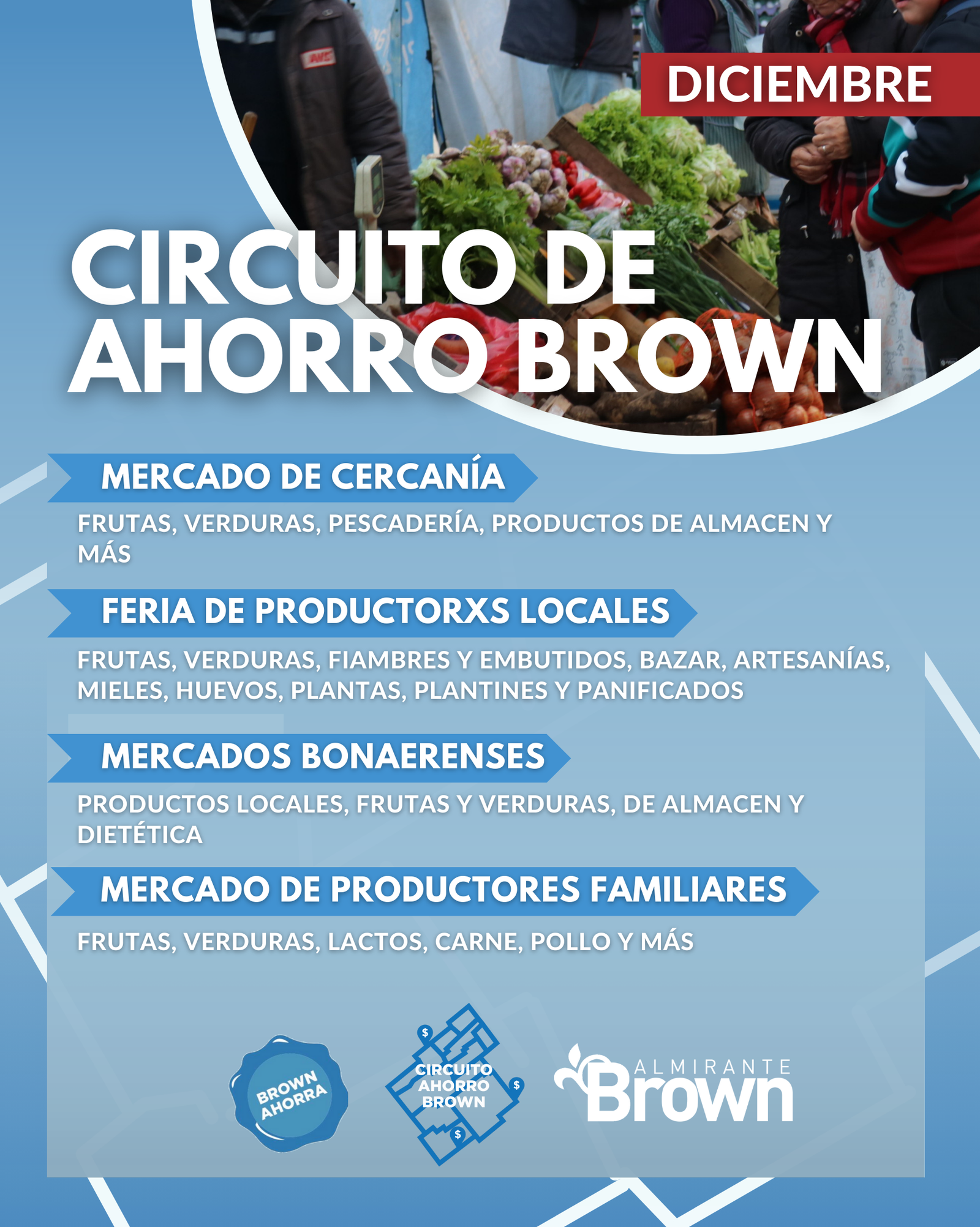 Como todos los meses, en diciembre vuelve el “Circuito de Ahorro Brown” a los barrios de nuestro distrito con propuestas de mercado y los mejores productos a precios accesibles.