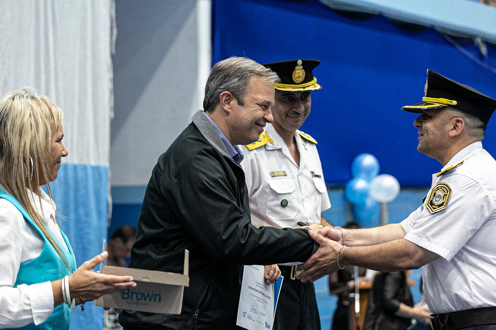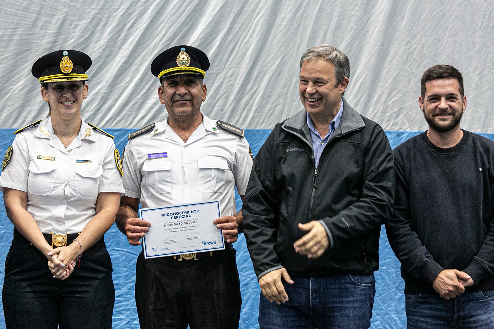 Durante un emotivo acto realizado en el Polideportivo de Ministro Rivadavia en el marco del 202° aniversario de la creación de la Policía de la Provincia de Buenos Aires, el intendente de Almirante Brown Mariano Cascallares participó de la entrega de reconocimientos y condecoraciones a efectivos brownianos por su destacada labor al servicio de los vecinos.