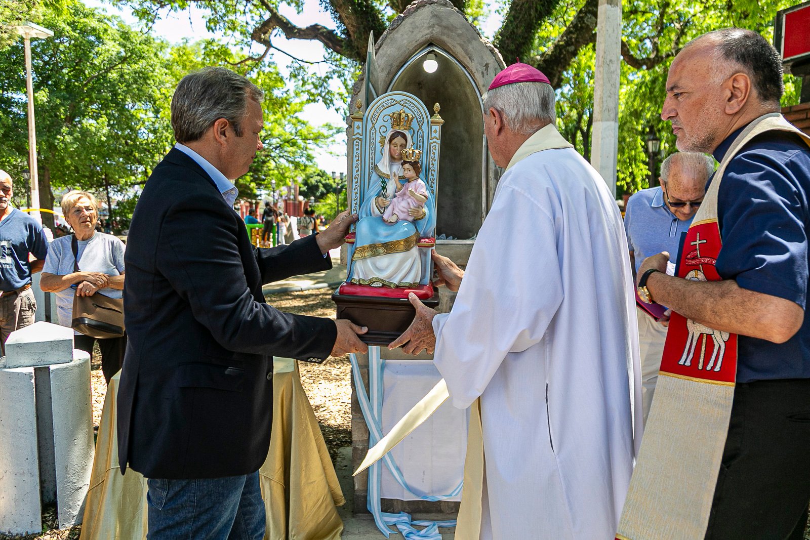 El intendente de Almirante Brown, Mariano Cascallares, encabezó un emotivo acto junto con el obispo de la Diócesis de Lomas de Zamora, monseñor Jorge Lugones, en el que se entronizó la figura de la Virgen de Nuestra Señora de la Paz en la plaza San Martín.