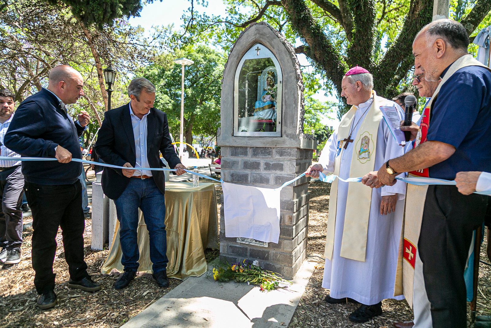 La jornada tuvo lugar en el espacio verde ubicado entre las calles Seguí y General Roca, en la localidad de Adrogué, donde se llevó a cabo la entronización de la virgen patrona de la diócesis lomense a través de la construcción de una ermita.
