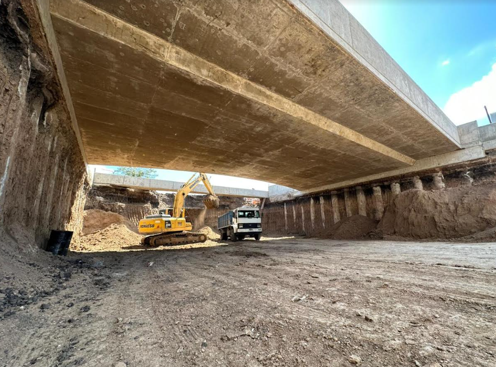 El Municipio de Almirante Brown informó que, gracias a la articulación con el Gobierno Nacional, avanzan a todo ritmo los trabajos de excavación debajo de la rotonda Los Pinos para habilitar la circulación vehicular a lo largo del nuevo Viaducto de Ruta 4 en la localidad de Burzaco.