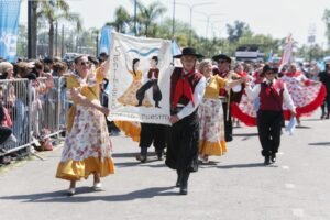 La celebración se cerró con un colorido desfile que contó con la participación de delegaciones escolares, representantes de entidades de bien público, centros de jubilados, bomberos, y ex combatientes al cumplirse los 40 años de la heroica gesta. También se sumaron centros tradicionalistas que amenizaron el encuentro con el canto de payadores y se exhibieron carruajes y caballos ante el aplauso de los presentes.