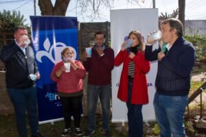 Al llegar al lugar, los mandatarios recorrieron el barrio y brindaron simbólicamente con las familias del barrio Rayo de Sol celebrando la llegada de un servicio tan importante y vital que estaban esperando hacía décadas, como lo es la red de agua potable.
