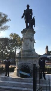 El homenaje se llevó a cabo en la Plaza Brown donde se encuentra el monumento al Almirante Brown. Lo encabezó el presidente del Concejo Deliberante local, Nicolás Jawtuschenko; el titular del Instituto de Estudios Históricos de Almirante Brown, Emilio Klubus, y el presidente de la filial Almirante Brown fundadora del Instituto Nacional Browniano, Adolfo Iñiguez.