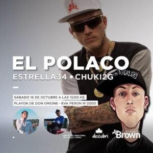 Mientras tanto, el sábado 16 de octubre desde las 15 horas se presentará El Polaco junto a Estrella 34 y Chuki2G en el Playón de Don Orione sobre la Avenida Eva Perón N° 2000.