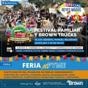 El Municipio de Almirante Brown llevará adelante hoy viernes 6, sábado 7 y domingo 8 de enero un festival familiar con Food Trucks en la Plaza General Manuel Belgrano de Burzaco, en el marco de la llegada de los Reyes Magos.
