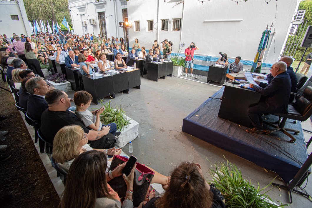 Esta sesión preparatoria se llevó a cabo en el exterior del edificio del Honorable Concejo Deliberante y fue trasmitida por pantallas a través de un circuito cerrado de cámaras para los vecinos y la militancia que se encontraban afuera en la calle.