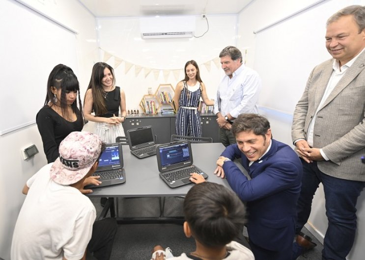 Posteriormente, Kicillof y el jefe comunal se dirigieron al Parque Don Orione, situado a unas cuadras en Eva Perón N°2022, donde conmemoraron el Primer año de los Centros Socioeducativos y Comunitarios Móviles (CSC).
