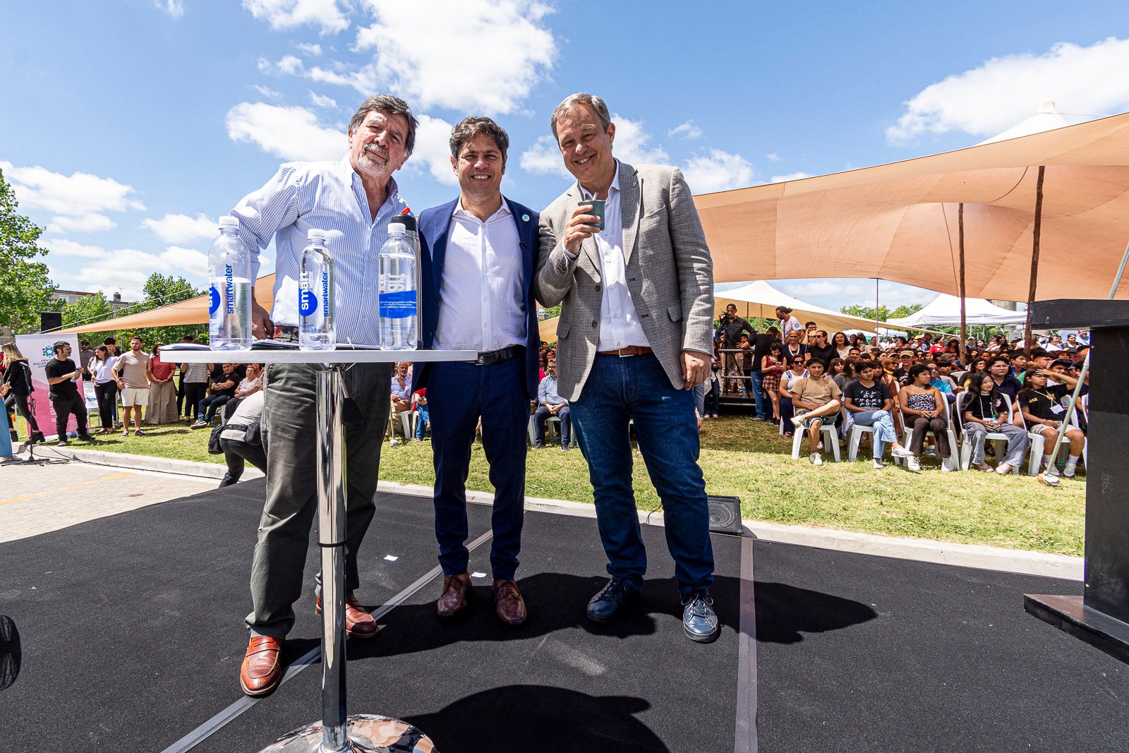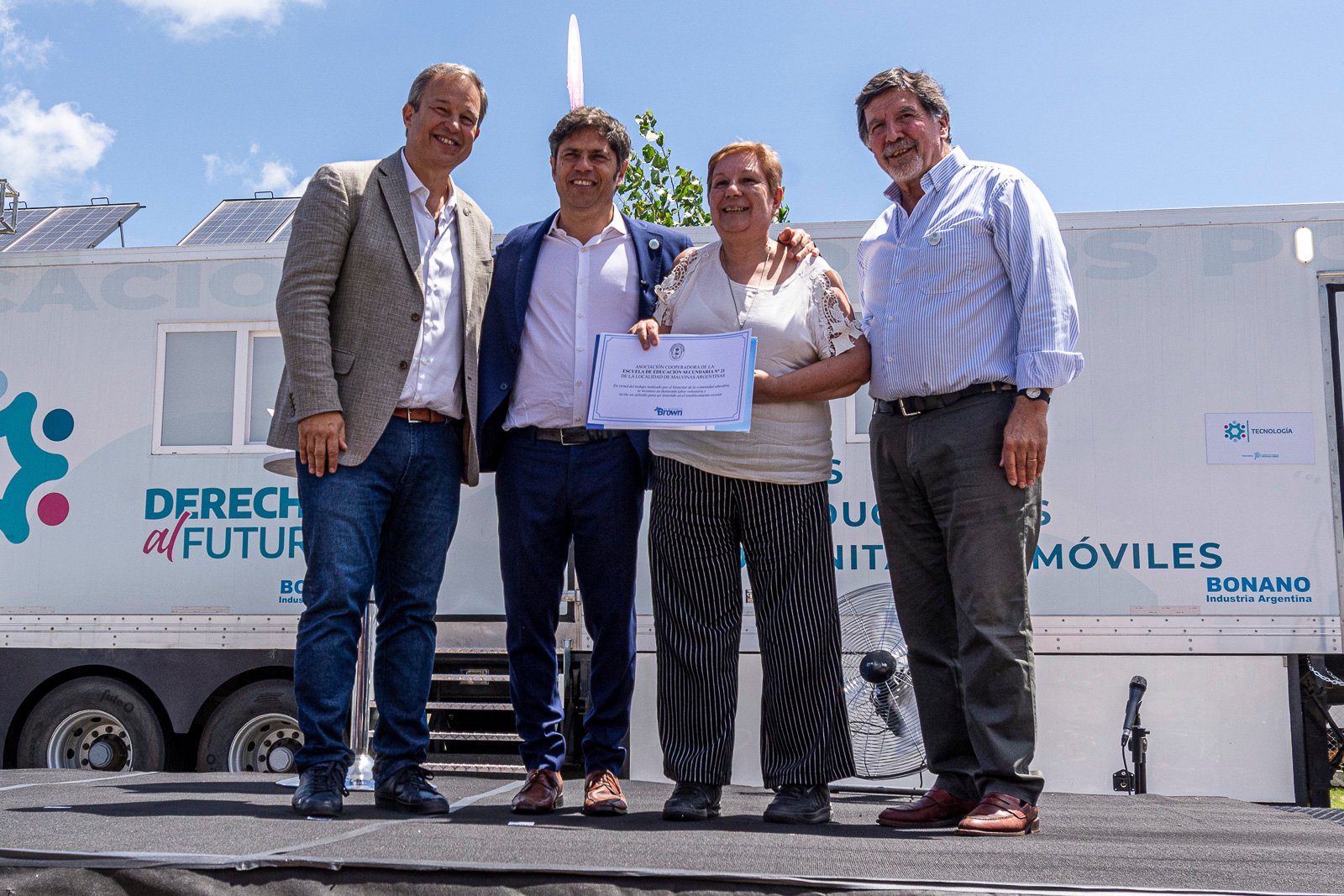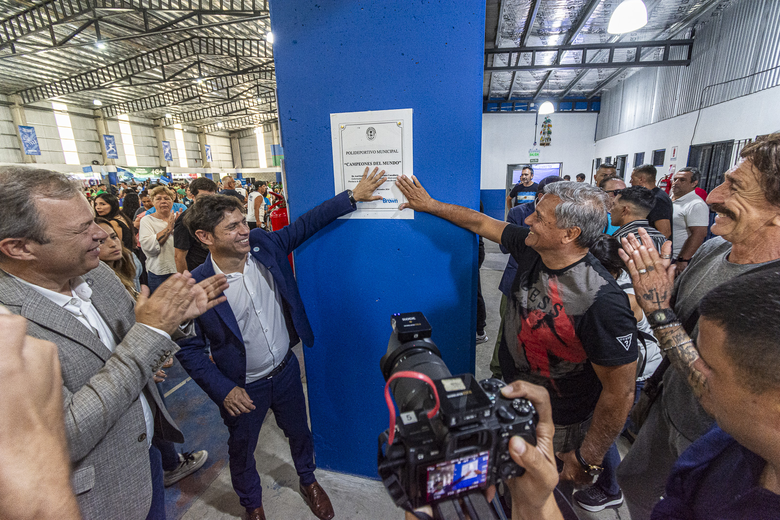 El gobernador de la Provincia de Buenos Aires, Axel kicillof, y el intendente de Almirante Brown, Mariano Cascallares, impusieron el nombre “Campeones del Mundo” al Polideportivo de Don Orione y luego compartieron una importante agenda educativa conmemorando el primer año de los Centros Socioeducativos y Comunitarios Móviles.
