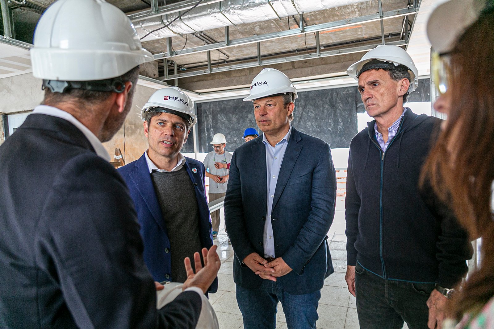 El gobernador de la Provincia de Buenos Aires, Axel Kicillof, visitó junto al intendente de Almirante Brown, Mariano Cascallares, los avances de las obras de la nueva sucursal del Banco Provincia que se está construyendo en el Parque Industrial de Burzaco.