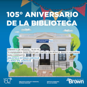 “La Biblioteca Esteban Adrogué es una de las instituciones más queridas por nuestra comunidad y también un punto de encuentro para la cultura y sobre todo la literatura universal, un lugar especial para disfrutar de la lectura”, sostuvo Mariano Cascallares, al tiempo que invitó a las familias brownianas a sumarse a los festejos por un nuevo aniverario.