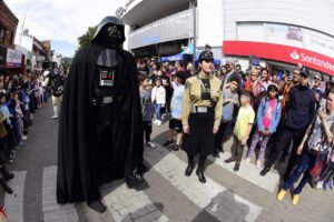 Miles de familias participaron este domingo del desembarco de los personajes del universo Star Wars por las calles de nuestro distrito, en una jornada que finalizó con una Casa de la Cultura colmada de chicos y grandes que saludaron y se fotografiaron con las y los protagonistas de Star Wars.