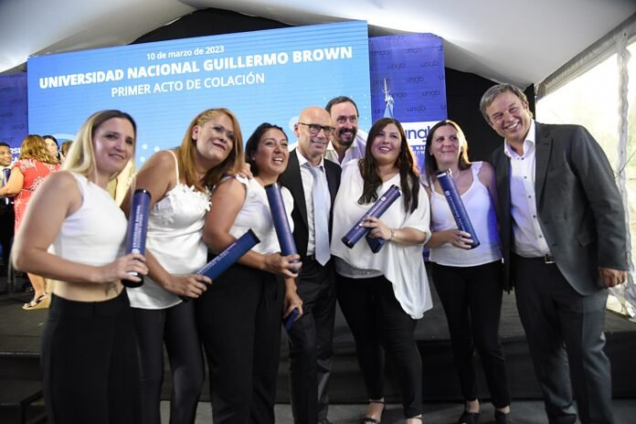Durante una emotiva ceremonia de egreso que tuvo lugar en el Campus que la Universidad Nacional Guillermo Brown (UNAB) posee en la Quinta Rocca de Burzaco, se produjo la colación de los primeros estudiantes graduados de la Casa de Altos Estudios browniana.
