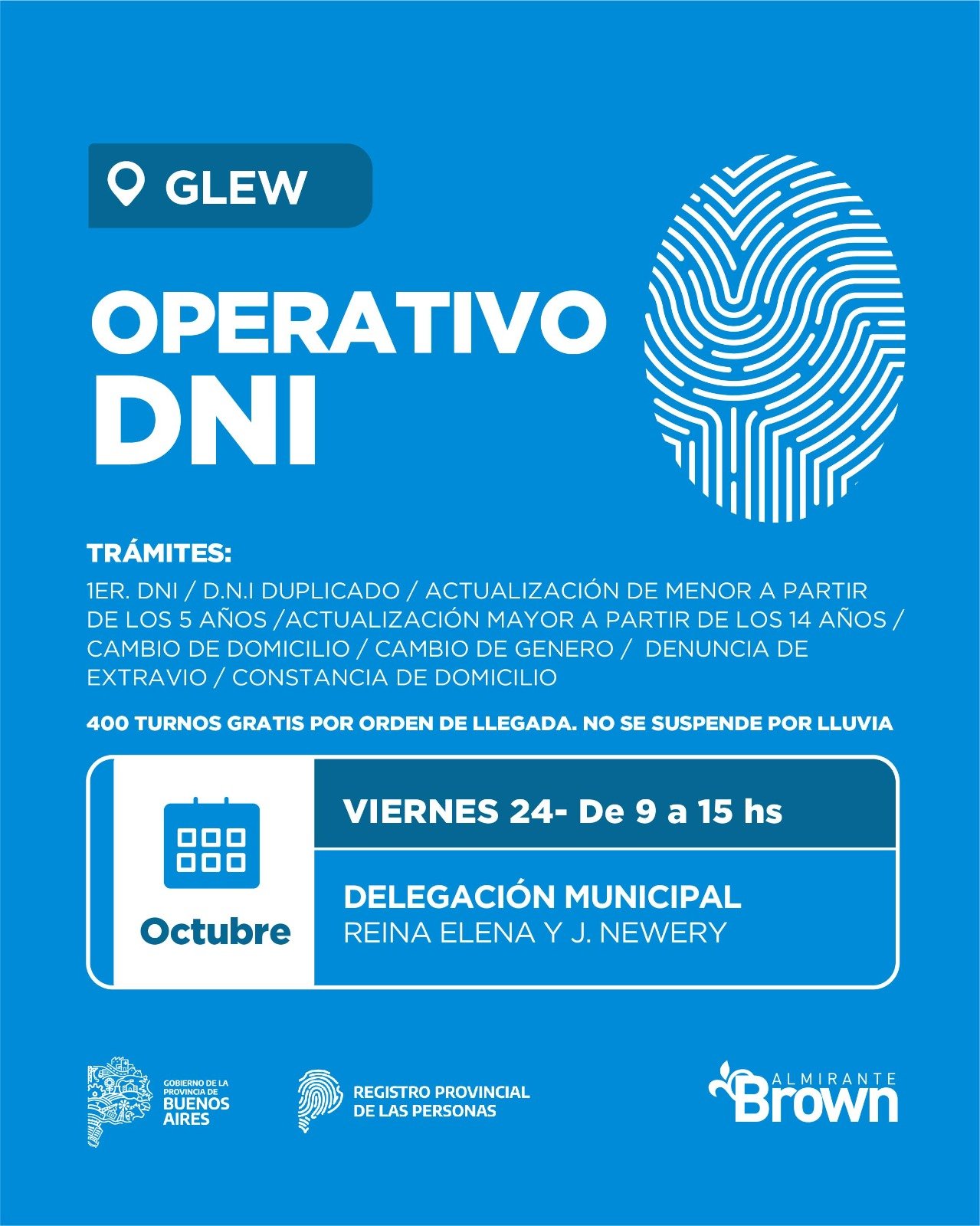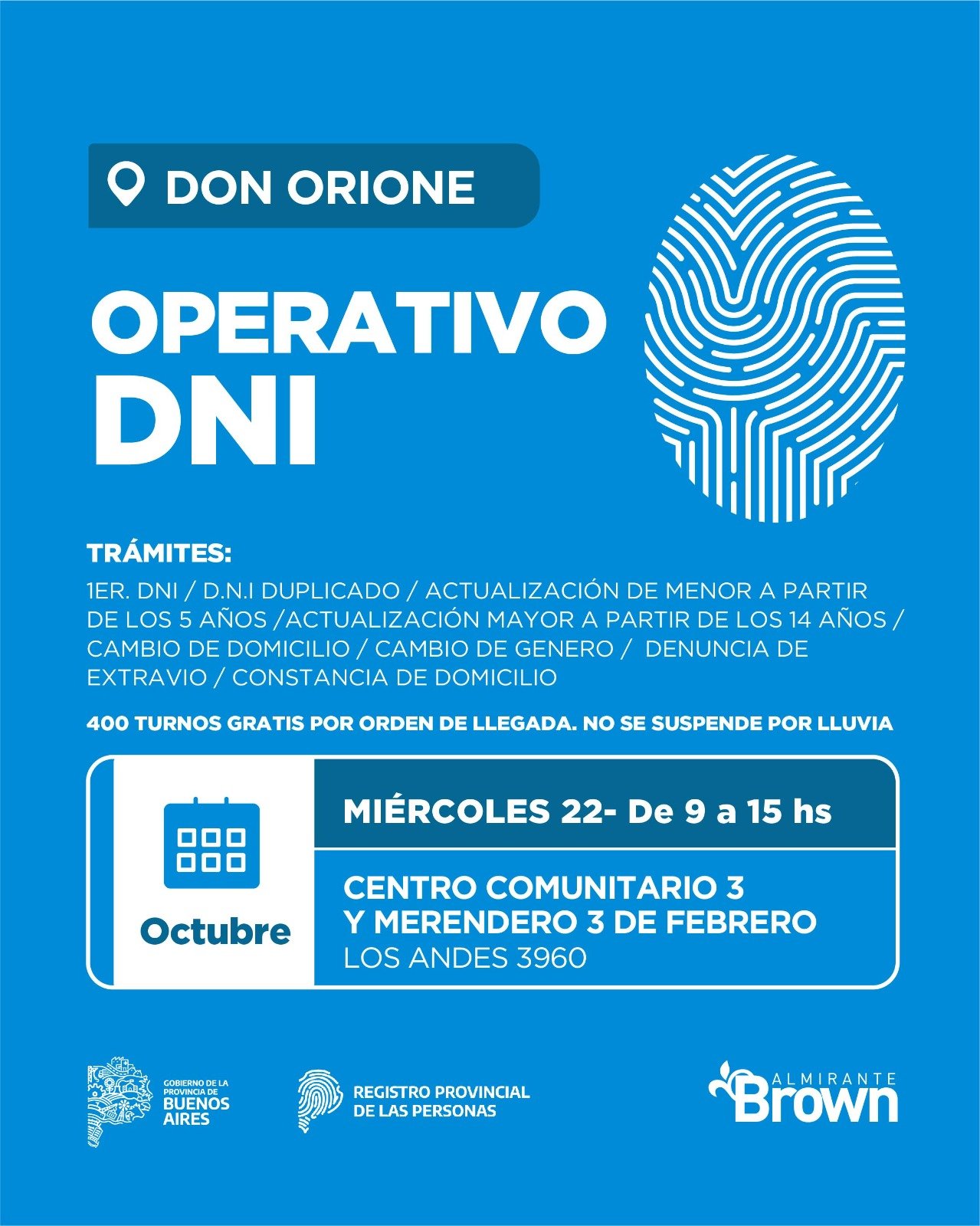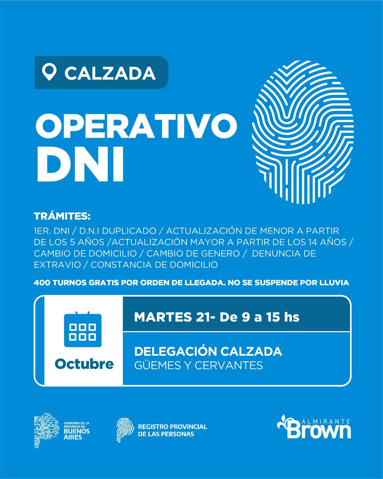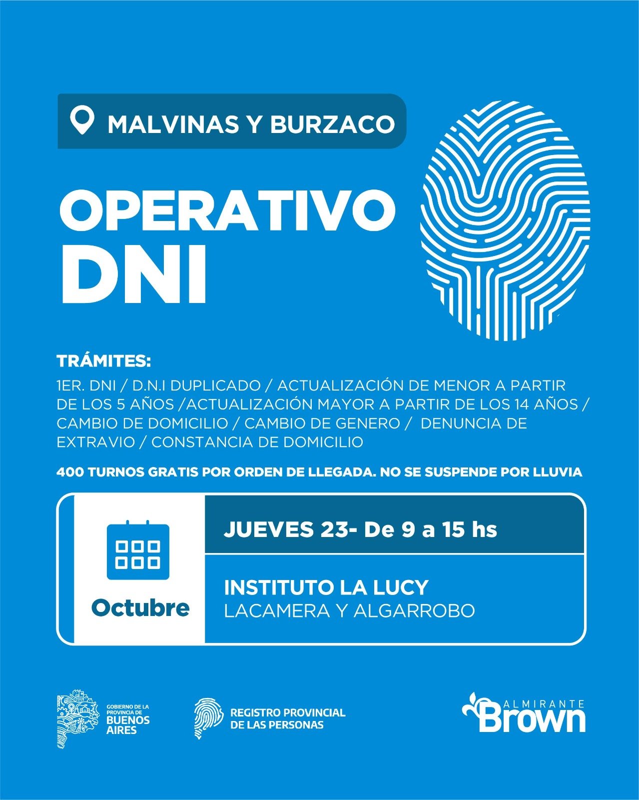 Esta importante iniciativa es realizada por el Municipio de Almirante Brown con el Registro Provincial de las Personas y la Jefatura de Asesores del Gobernador del Gobierno de la Provincia de Buenos Aires.