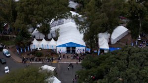 Esta nueva edición de FILAB se lleva adelante en un moderno complejo de carpas instalado en la Plaza Brown, el cual está conformado por un amplio sector con stands de libros de distintas editoriales y también auditorios específicos para diversas actividades.