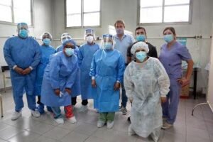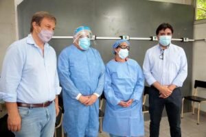 El intendente Mariano Cascallares junto al secretario de Salud de Almnirante Brown, Walter Gómez, presenciaron un operativo de vacunación en el Lucio Meléndez y dialogaron con el personal que se mostró entusiasmado por la posibilidad de poder vacunarse.