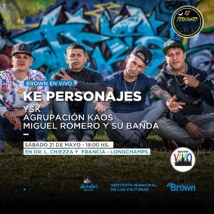 El Municipio de Almirante Brown, a través del Instituto Municipal de las Culturas, llevará adelante el próximo sábado 21 de mayo una nueva edición del ciclo de recitales abiertos al aire libre “Brown en Vivo” en Longchamps, con la presentación de la banda Ke Personajes.