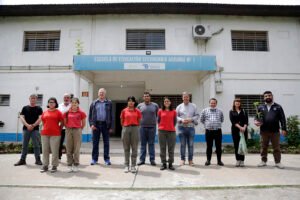 El intendente de Almirante Brown, Mariano Cascallares, visitó junto al ministro de Educación de la Nación, Jaime Perczyk, la Escuela de Educación Agraria N°1, donde se están llevando adelante los programas “Volvé a la Escuela” y “ATR” para la intensificación de la enseñanza en aquellos estudiantes que requieren reforzar aprendizajes.