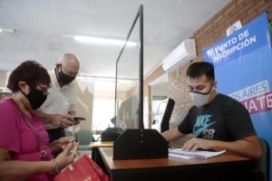- En los centros comerciales, en las instituciones intermedias del distrito, en los centros de jubilados y en las estaciones de trenes brownianas funcionan mesas del Municipio en las que se ofrece asesoramiento, información e incluso se inscribe en el plan de vacunación más importante de la historia.