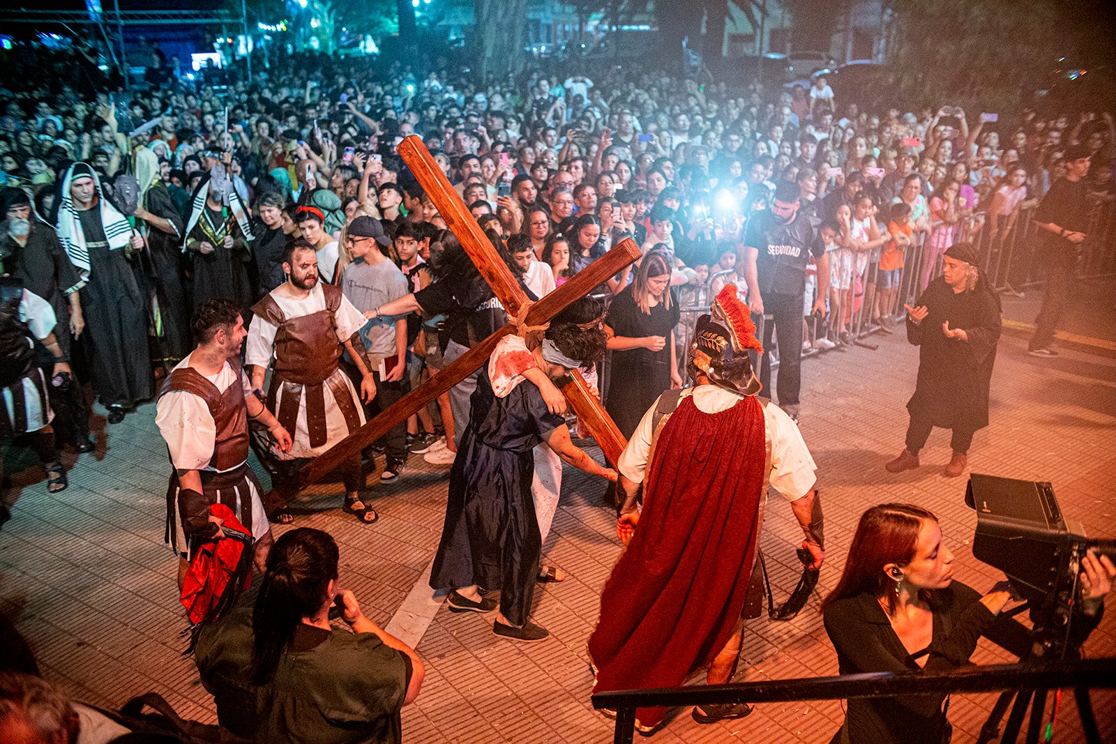 Durante el evento se vivieron momentos inolvidables con el multitudinario elenco que interpretó el juicio a Jesús, la negación del apóstol Pedro, la vía dolorosa, la crucifixión y resurrección, en un escenario montado en el espacio público ubicado en Diagonal Brown y Rosales.