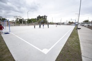Y este espacio de Longchamps también cuenta con un hermoso polideportivo para la práctica de deportes al aire libre. Es para destacar que los trabajos en el espacio público fueron llevados adelante a través de cooperativas.