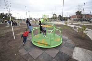 En la renovada plaza -ubicada en la intersección de las calles Entre Ríos, Presidente Mitre, Quintana y Santa Fe- se dispusieron lugares de esparcimiento y reposo, además de los sectores de juegos infantiles, y de deportes (playón). Se realizaron trabajos de forestación y parquización, se colocaron juegos nuevos (integradores), mobiliario urbano y luminarias LED. También se construyeron todas las veredas, y se delimitó un sector destinado a la socio-producción, a través de ferias.