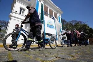 “Con este equipamiento de bicicarros que nos da la Municipalidad de Almirante Brown estamos empezando la recolección diferenciada en los comercios. La verdad que es una noticia buenísima y lo más importante es que gracias a esto vamos a sacar la tracción a sangre de las calles”, remarcó Luis, uno de los recicladores urbanos que recibió su bicicleta.