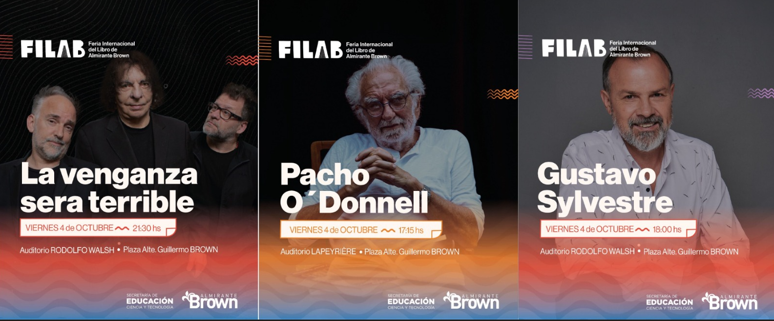 El Municipio de Almirante Brown destacó que este viernes, sábado y domingo la octava edición de la Feria Internacional del Libro browniana (FILAB) contará con charlas de primer nivel de la mano del periodista Reinaldo Sietecase, de Alejandro Dolina con «La Venganza será Terrible», Felipe Pigna, Florencia Canale, Tute, Mauro Szeta y Paulo Kablan, Alejandro Apo y el show de La Bomba del Tiempo, entre otras muchas atracciones.