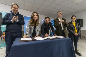 La ministra de Desarrollo Social de la Nación, Victoria Tolosa Paz, junto a Mariano Cascallares y al intendente interino de Almirante Brown, Juan Fabiani, firmaron en nuestro distrito sendos convenios para potenciar las políticas públicas vinculadas a los derechos y el desarrollo de la niñez y la adolescencia.