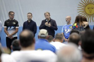 «En el marco de la conmemoración del 40 aniversario de la gesta de Malvinas, participamos en nuestro Polideportivo Municipal de Ministro Rivadavia de este emotivo encuentro con ex combatientes de gran parte de la provincia de Buenos Aires. El deporte y el amor por nuestra Patria nos unen para homenajear a quienes lo dieron todo en defensa de la soberanía nacional, indicó Mariano Cascallares.