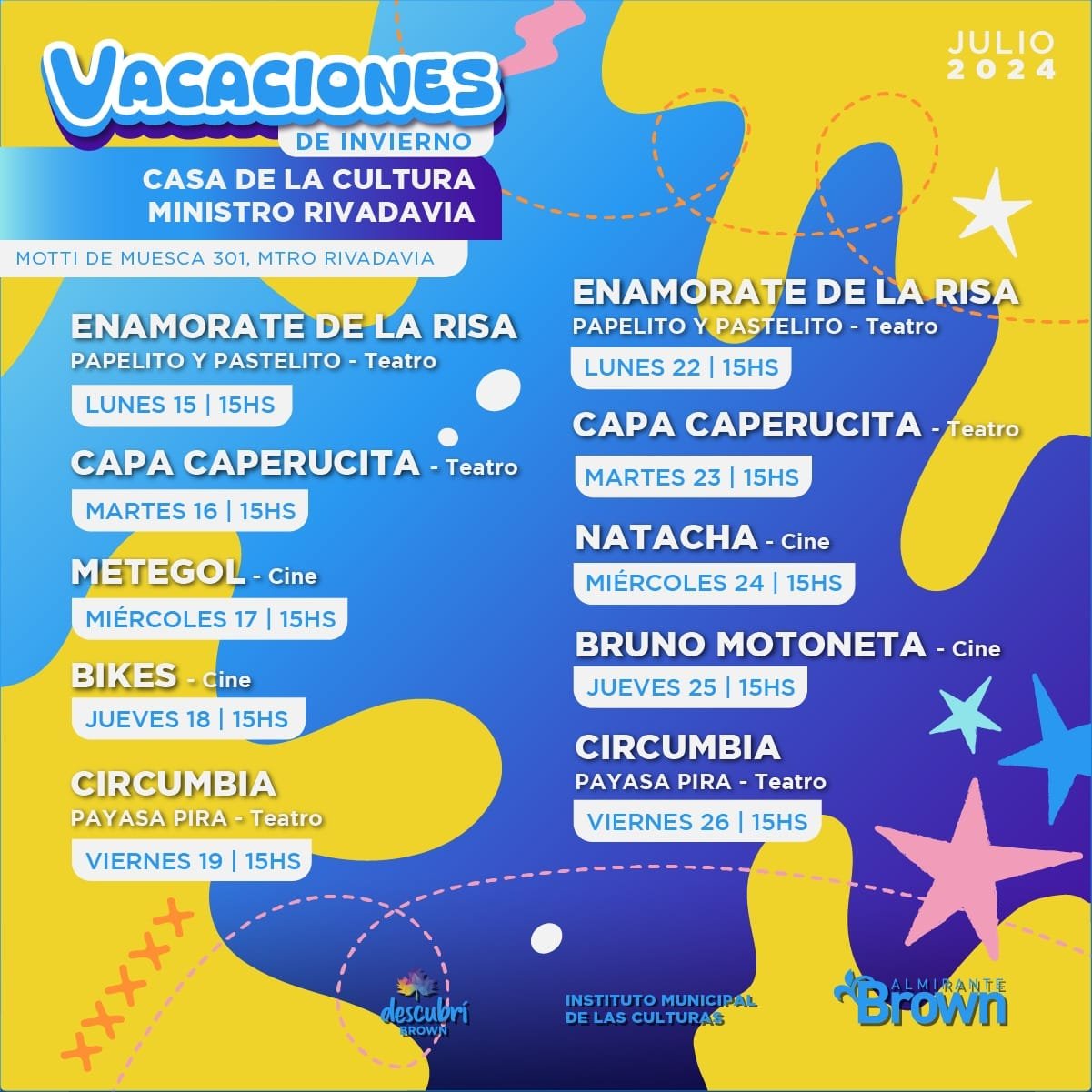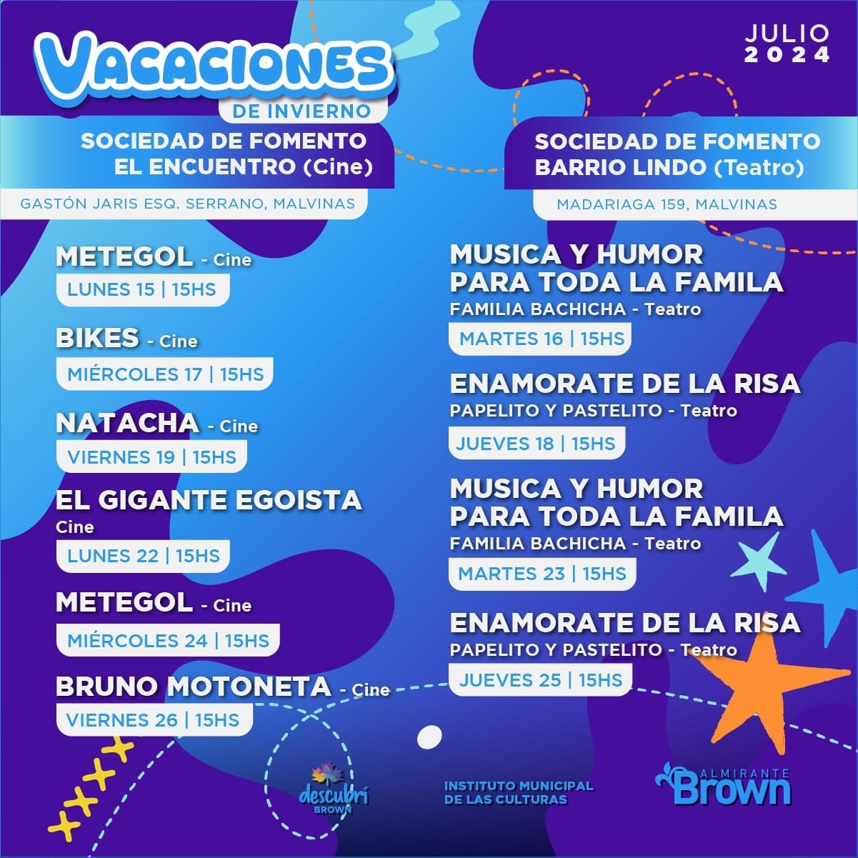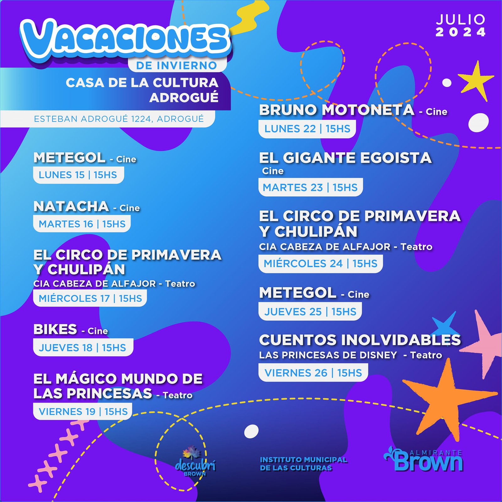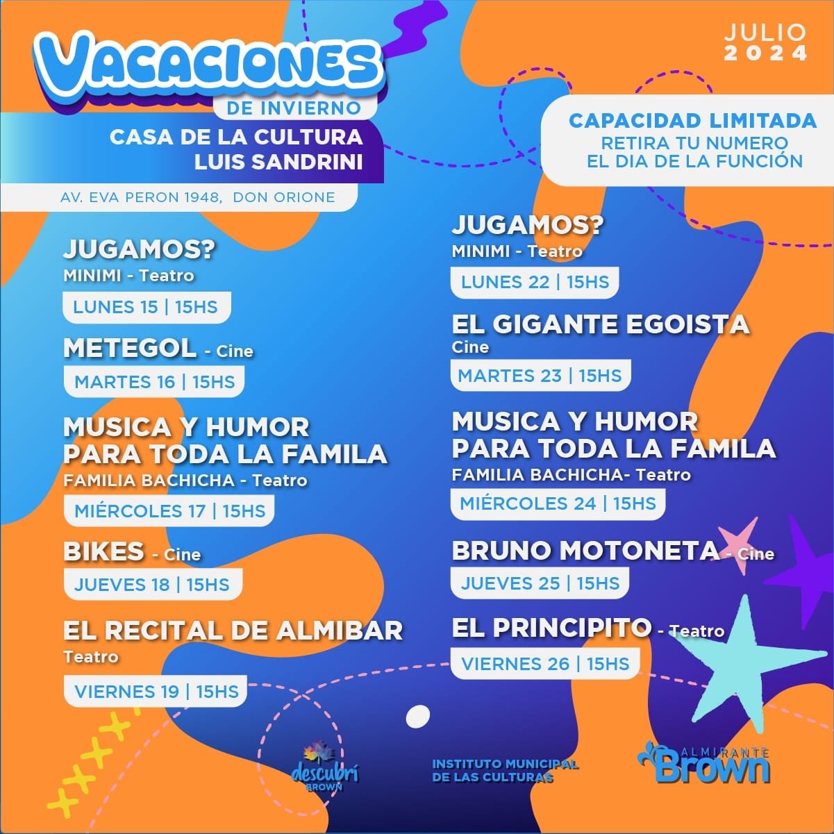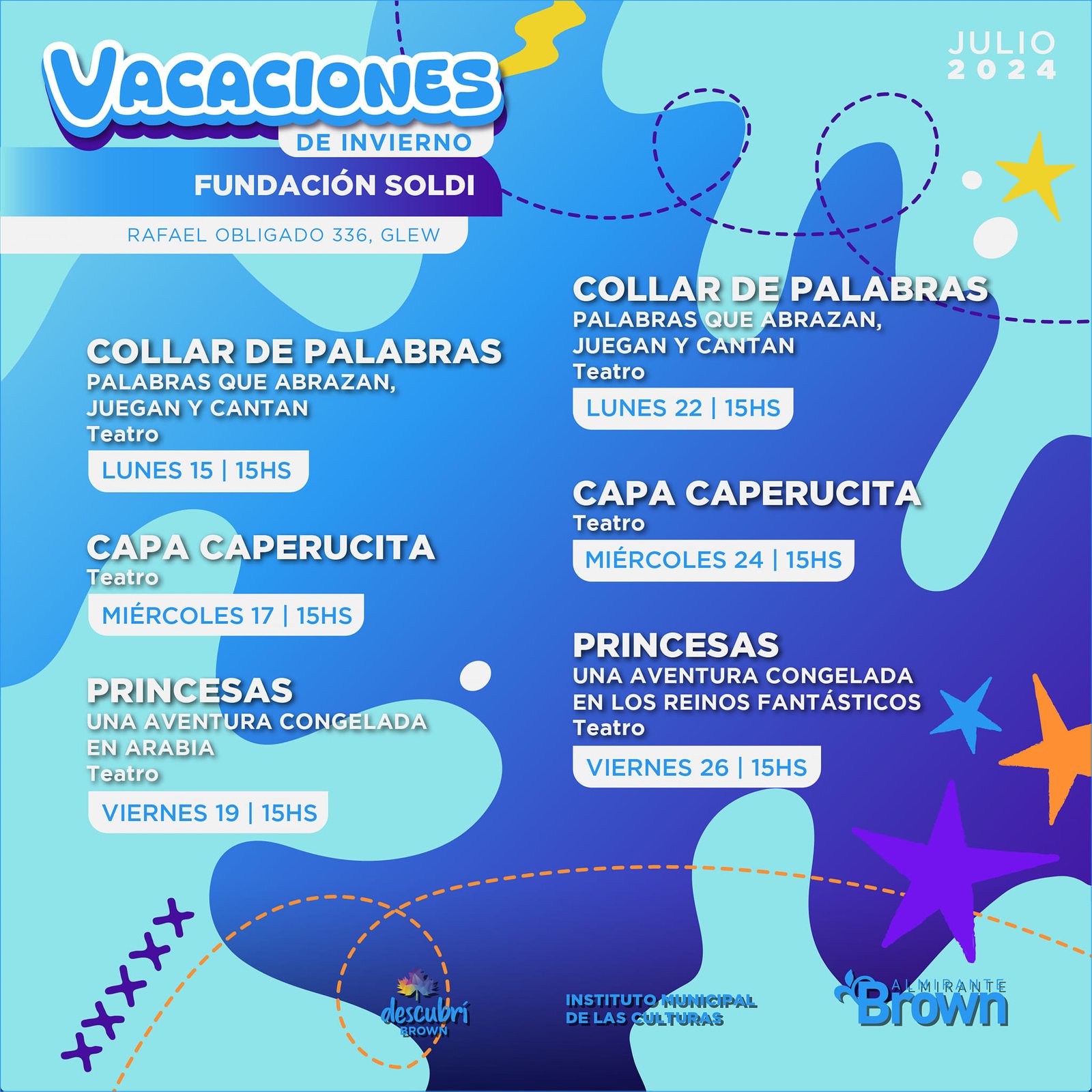 Como todos los años, durante el receso escolar de invierno el Municipio de Almirante Brown ofrecerá una variada agenda cultural con espectáculos y actividades recreativas para el deleite de chicos y grandes.