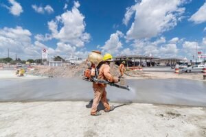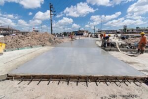 Luego de poner en marcha la excavación del túnel y reforzar la estructura del viaducto, actualmente los trabajos se concentran en la pavimentación con hormigón de la rotonda, que además será más grande para una mejor fluidez vehicular en el ingreso mismo al Sector Industrial Planificado de Almirante Brown.