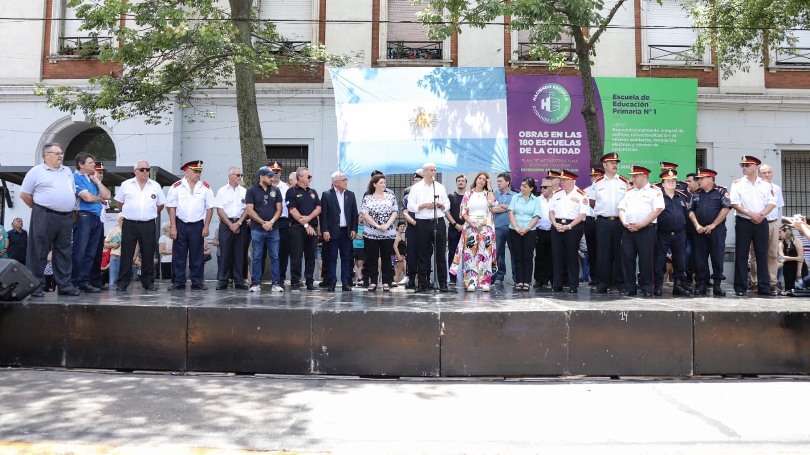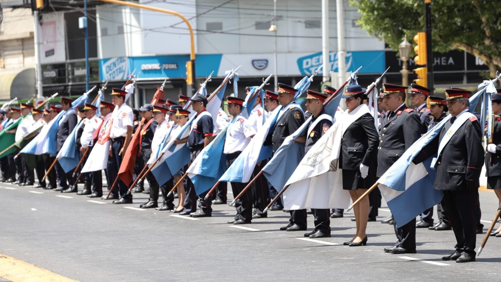 El intendente Jorge Ferraresi, junto con la jefa de Gabinete, Magdalena Sierra, integrantes de todos los cuarteles locales, funcionarixs del Ejecutivo y del Honorable Concejo Deliberante e instituciones de Avellaneda participaron de este festejo que se llevó a cabo a lo largo de la Av. Mitre, en la Plaza Alsina.