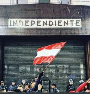 Cientos de socios e hinchas de Independiente se acercaron hasta la puerta de la sede a protestar y pedir que se fije una fecha para los comicios que fueron postergados por la justicia debido a la impugnación de la lista de Fabián Doman, uno de los dos candidatos opositores.