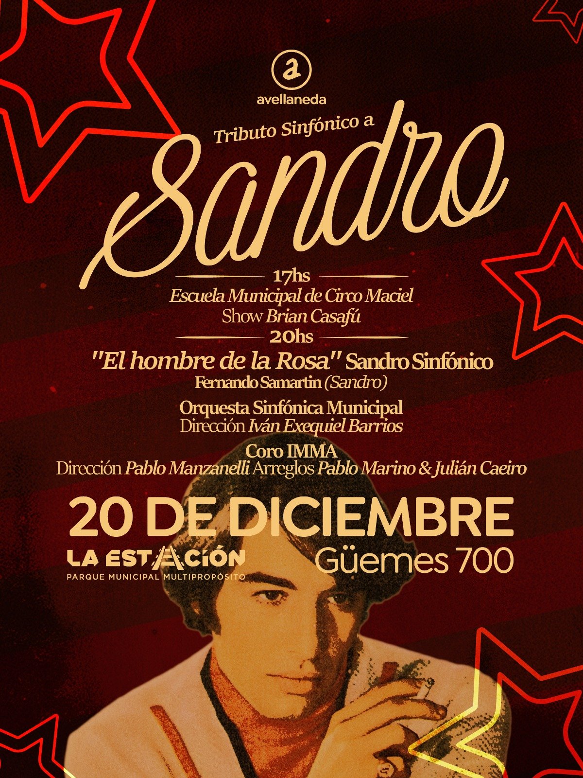 El sábado 20, a las 20 hs, se realizará el “Tributo Sinfónico a Sandro”, con la presentación del espectáculo “El hombre de la Rosa”, con Fernando Samartin, acompañado por la Orquesta Sinfónica Municipal, dirigida por Iván Exequiel Barrios.
