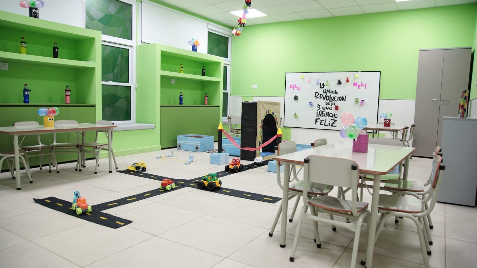 Gracias a una inversión de $91.741.538,85 se construyeron 4 aulas, dos para niñxs de 2 años, una para deambuladores, otra para lactantes completamente equipadas y con sus respectivos sanitarios. También cuenta con salón cubierto para usos múltiples, patio de juegos, dirección y cocina.