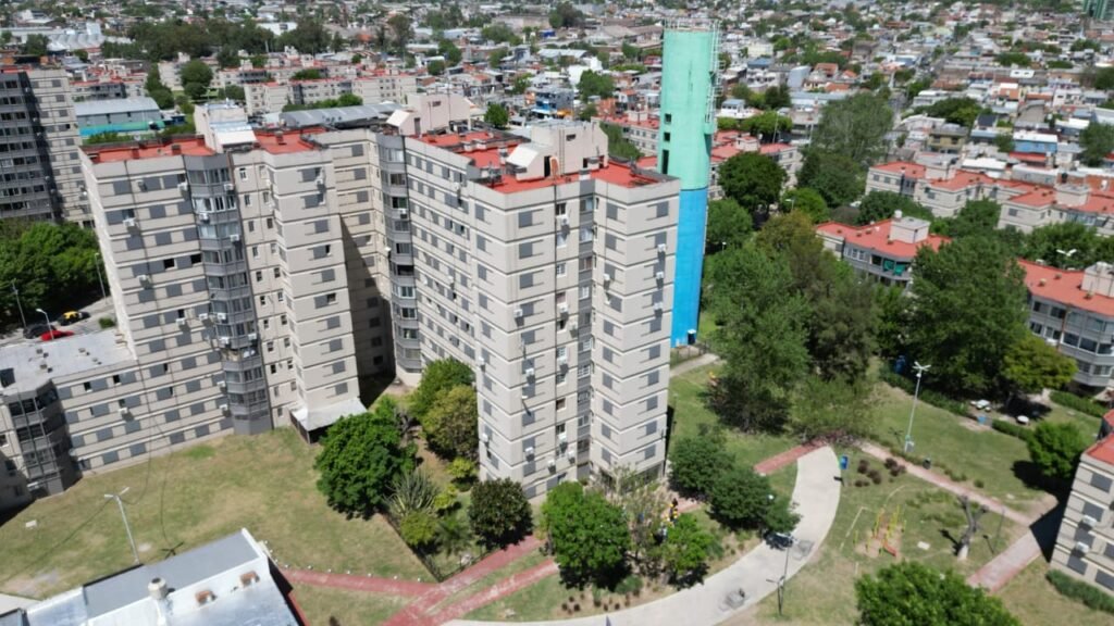 Posteriormente, las autoridades se dirigieron a Sarandí, donde visitaron la construcción de un complejo habitacional de 208 viviendas. La obra contempla departamentos de dos y tres ambientes, que incluyen patio y espacio guardacoches, con el objetivo de ampliar la oferta de vivienda familiar en el municipio.