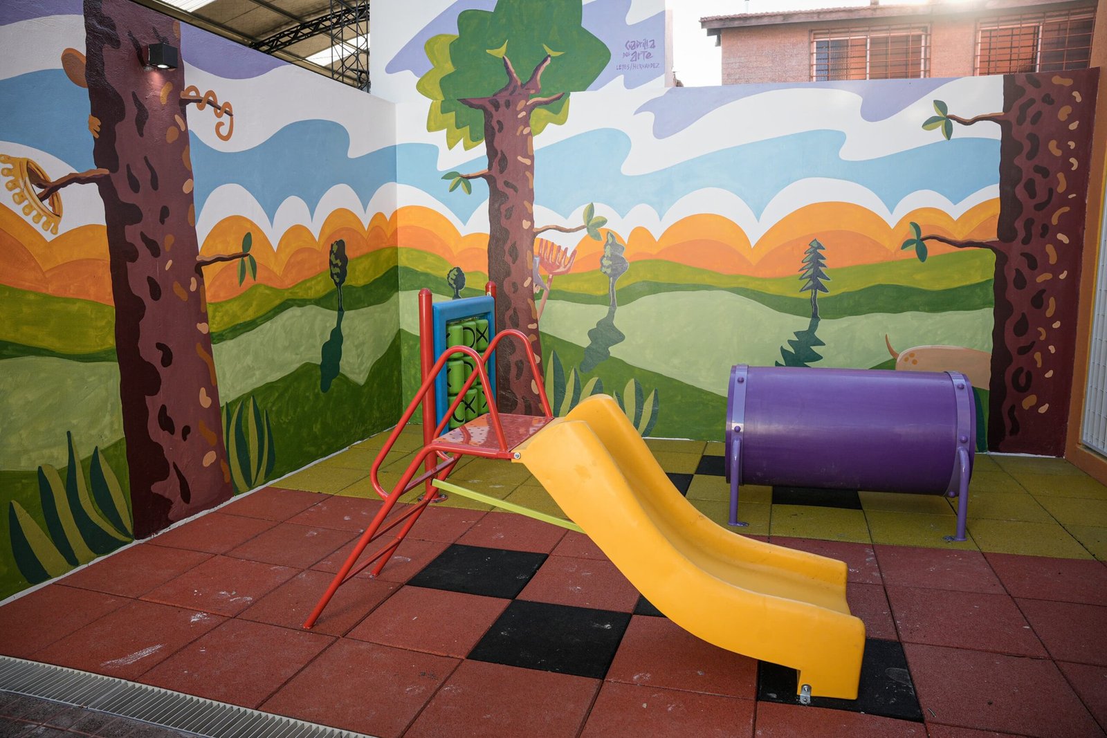 La construcción de 535 m2, tiene dos plantas compuestas por tres aulas con baños para infancias integrados. Cuenta con un SUM comedor, con baño para adultos y personas con movilidad reducida. Además, cocina, dos oficinas administrativas y patio con área blanda de juegos, entre otras comodidades.