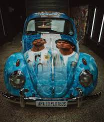 Entre las ‘locuras’ que generaron, la dupla cuenta que se hicieron famosos en pleno Mundial de Qatar 2022 por crear la Escaraneta, un VW Escarabajo modelo 1960 ploteado con fotos de Diego Armando Maradona, Lionel Messi y toda la Selección Argentina. El llamativo auto salió de Tres Arroyos con su dueño Claudio Baliña, pasó por el taller de la zona sur y, ya ploteado, estuvo en los festejos del tricampeonato en el Obelisco. Su imagen circuló por todo el país y el mundo.