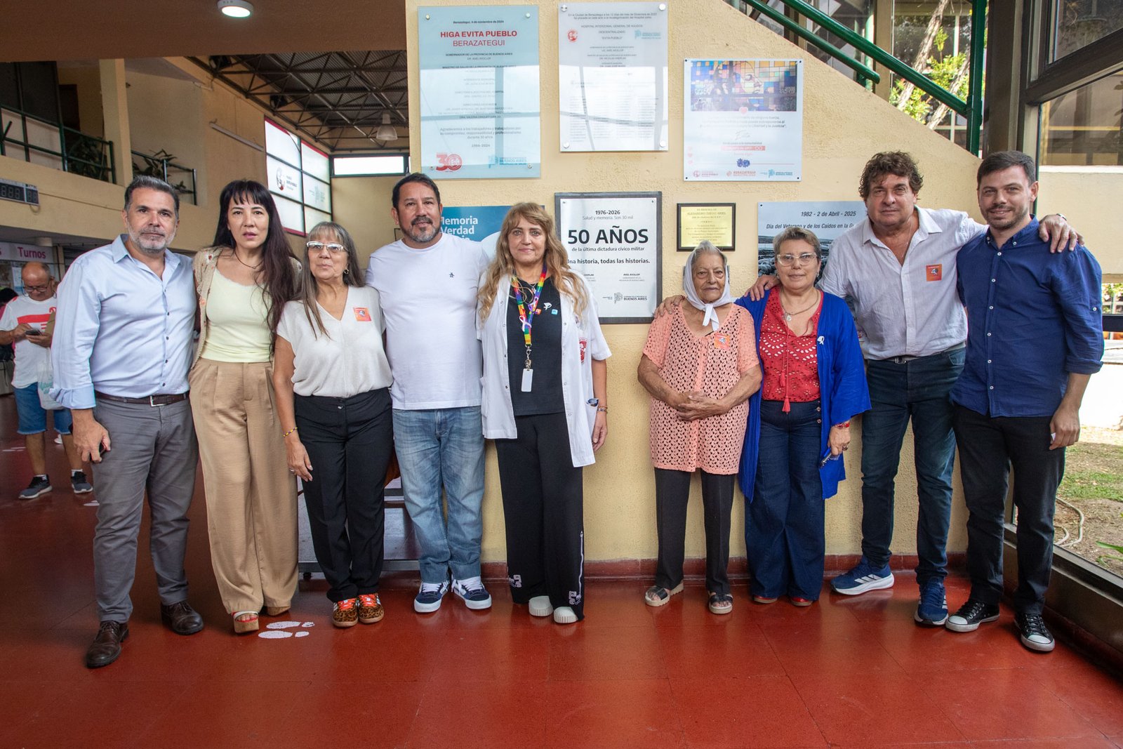Durante el encuentro, del que participaron también, en representación de la Región Sanitaria VI, el Dr. Luis Ignacio Martínez; trabajadores de salud, integrantes de sindicatos, vecinos y vecinas, se descubrió una placa conmemorativa en el hall central y se llevó a cabo un acto en el Salón Ateneo, con la lectura de poesías, la exhibición de pañuelos, pancartas y una bandera, con los nombres de los seis berazateguenses detenidos y desaparecidos; y una bendición por parte del Padre Ignacio Blanco -Parroquia Santa María-.