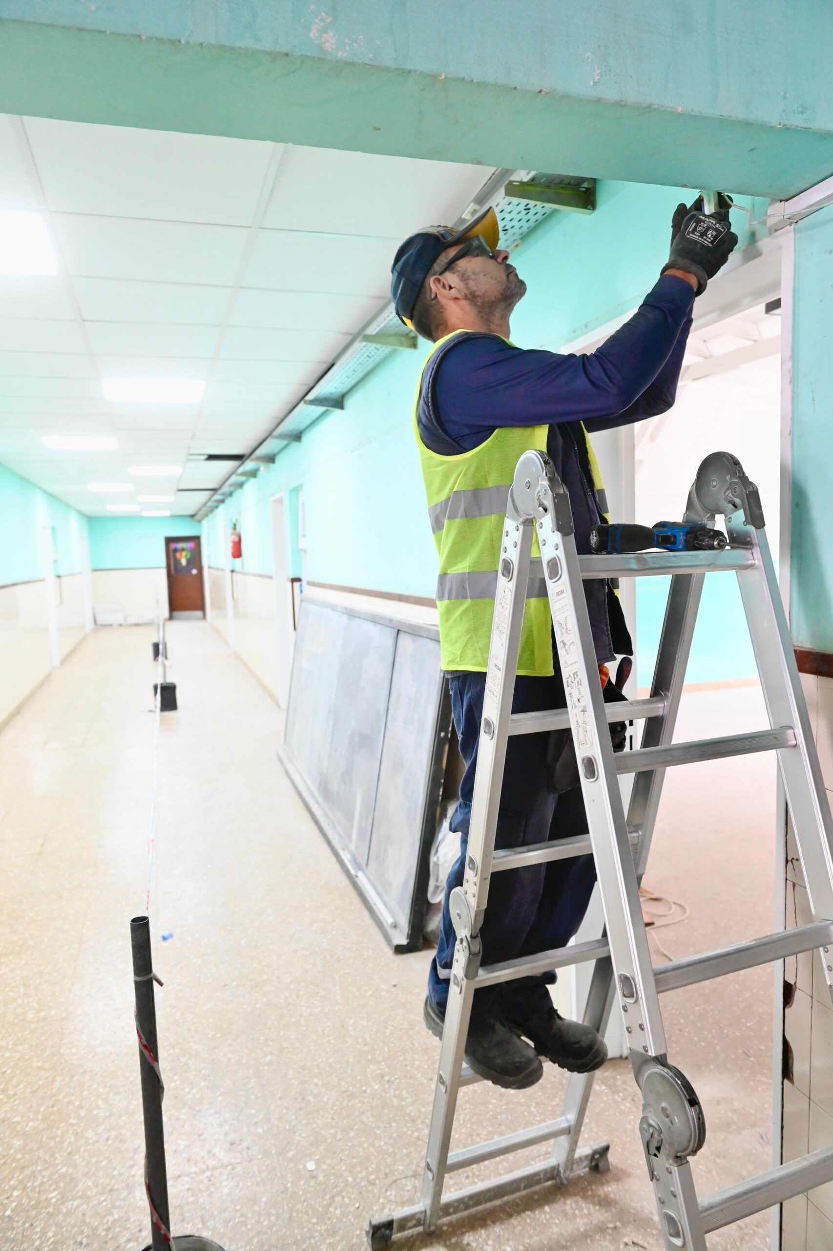 El Municipio de Esteban Echeverría continúa con las refacciones en la Escuela Primaria N° 54 de 9 de Abril, que durante el fuerte temporal del 8 de marzo sufrió la rotura y voladura del techo, lo que, a su vez, ocasionó daños en siete aulas, baños, la biblioteca, el Salón de Usos Múltiples (SUM) y la cocina.