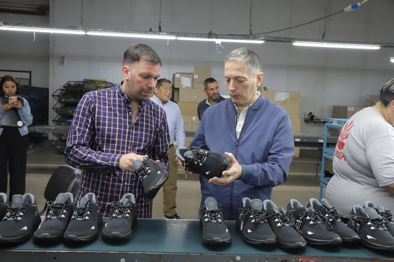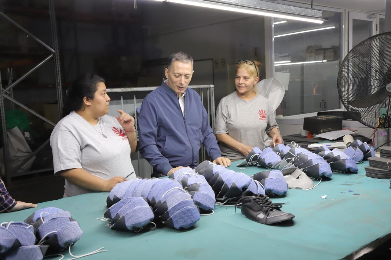 Durante la visita, el intendente y los representantes de la compañía conversaron con las trabajadoras y los trabajadores, y recorrieron las instalaciones donde se realiza el proceso completo de fabricación: corte de la materia prima, elaboración de tejidos, armado de la suela, producción de las capelladas, serigrafía, ensamble, embalaje y distribución de calzado a tiendas deportivas de todo el país.