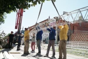 El Municipio también trabaja en el armado de techos parabólicos para el Club Social y Deportivo Estrella del Sur, el Club Parque 2000, la Unión de Padres Deportivo Infantil Unión y la Sociedad de Fomento El Jagüel.