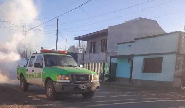 Las tareas de fumigación se llevan adelante todas las semanas en barrios y espacios públicos del partido para prevenir la propagación de enfermedades virales como el dengue, transmitidas por el mosquito Aedes aegypti .