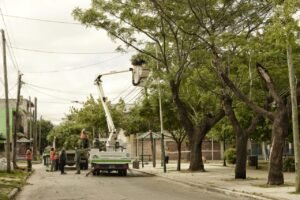 Esta semana, personal local avanza con los operativos en la Plaza España y la calle Madariaga, entre Boulevard Buenos Aires y Pedro Dreyer, donde se colocan un total de 72 luces led, en paralelo a los trabajos de poda y despeje que se iniciaron para liberar los focos y ampliar el campo de visión, tanto de las y los vecinos, como de las cámaras de seguridad.